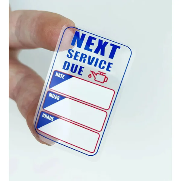 Our oil change stickers are engineered for automotive environments—printed with waterproof, UV-resistant ink and writable on the back. They stay clear and secure on car windshields or bumpers, even under oil, sunlight, and heat exposure.
